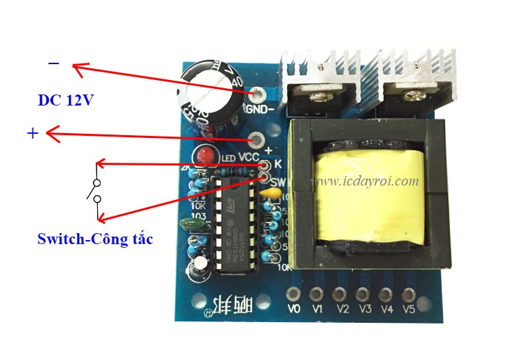 Mạch kích điện áp DC 12V lên điện áp AC 220V (mạch tăng áp)