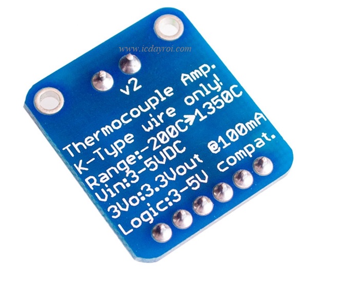 Comes with a 2 pin terminal block (for connecting to the thermocouple) and pin header (to plug into any breadboard or Perfboard)。