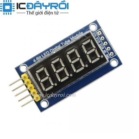 Module hiển thị 4 led 7 đoạn 0.36" với anode chung. Module nhỏ gọn nhưng đầy đủ chức năng cho việc hiển thị chữ số, thời gian. Chỉ với 3 chân CLK, DATA, LATCH kết nối với vi điều khiển là có thể hiển thị giá trị số lên module.