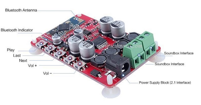 Mạch Amply Bluetooth 4.0 TDA7492P + CSR8635 - Âm thanh Class D, công suất ngã ra 2 kênh mỗi kênh 25W