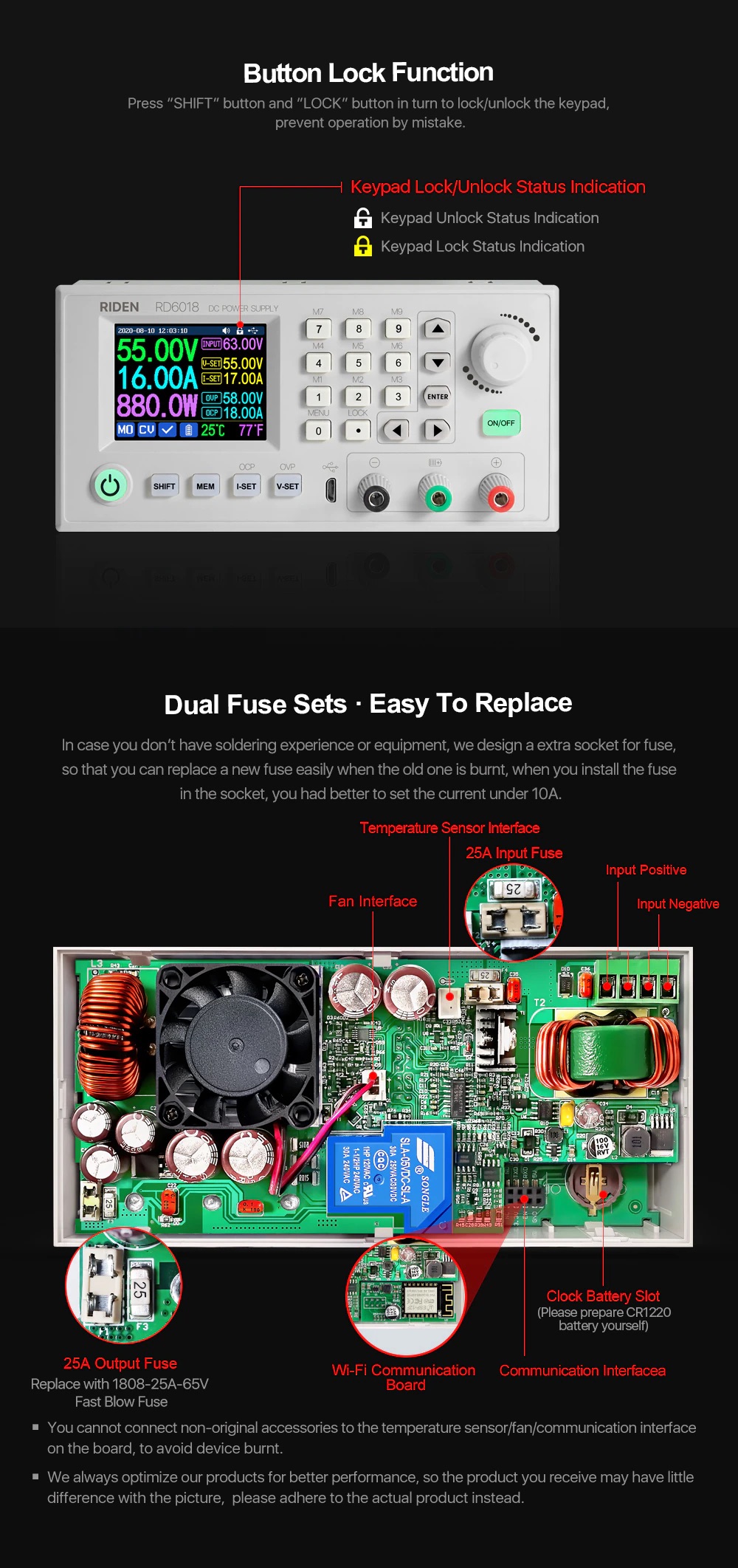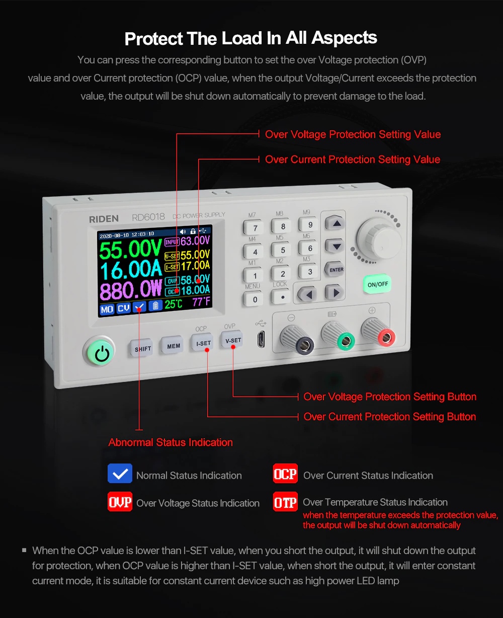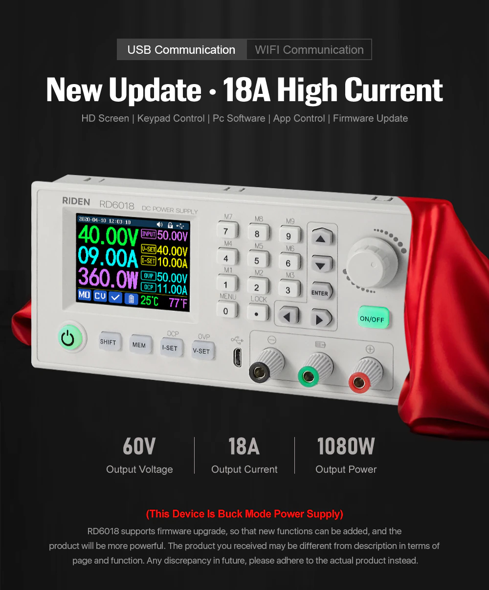 Nguồn điều chỉnh điện áp và dòng điện không đổi RD6018 công suất lên tới 1080w