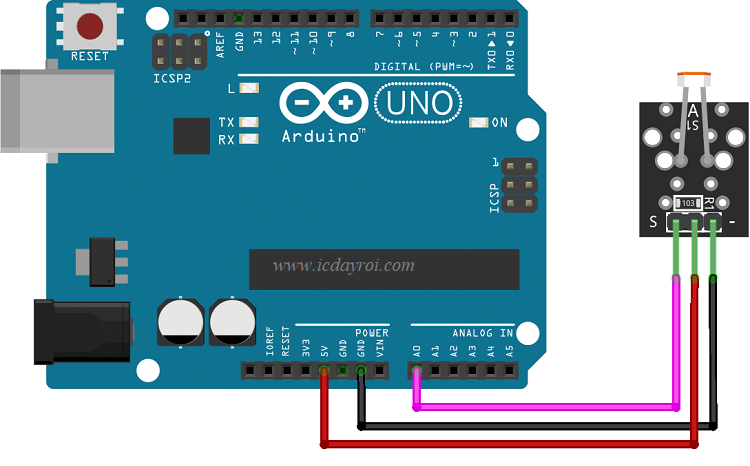 Module quang trở KY-018 dùng để đo cường độ ánh sáng