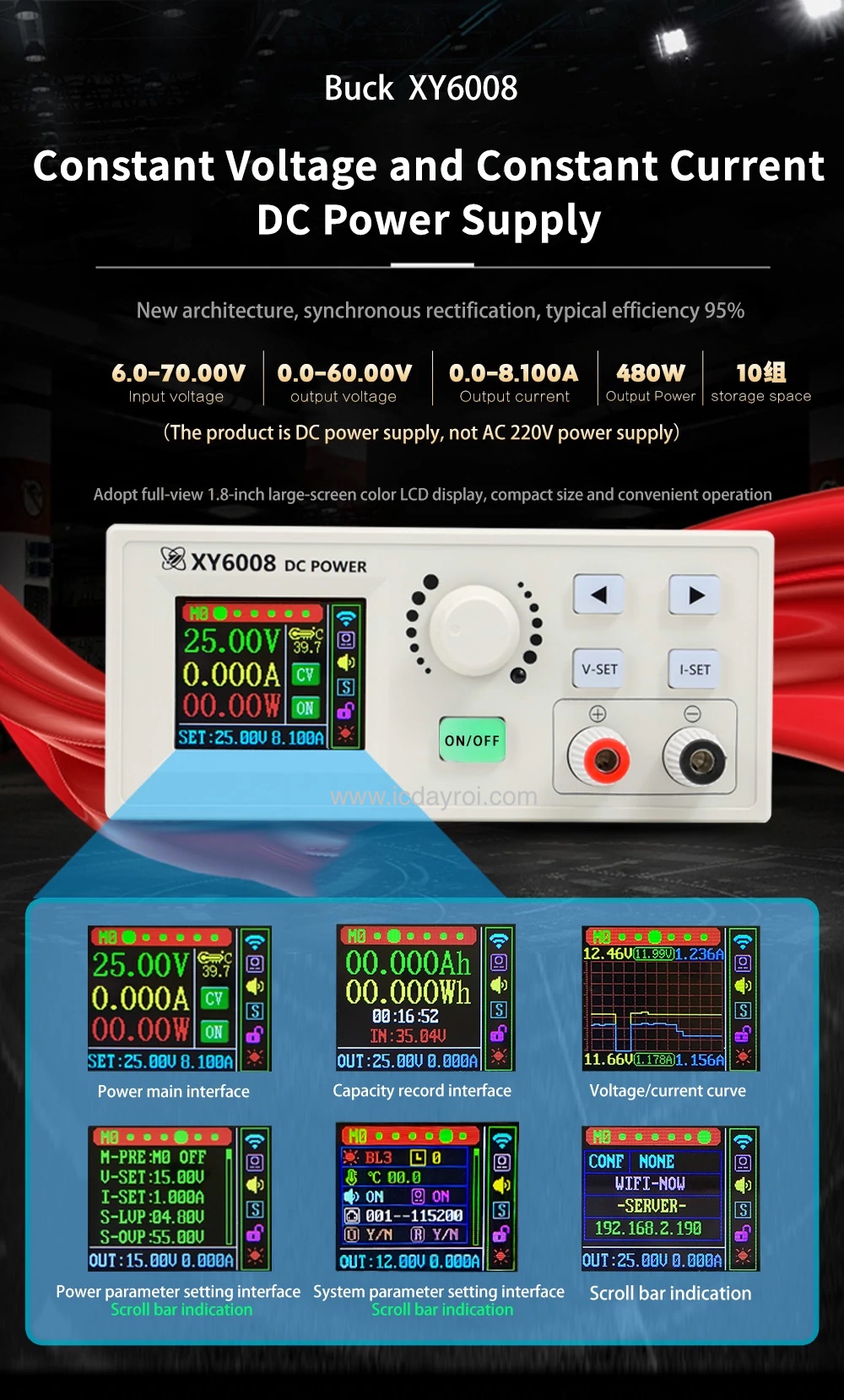 Module nguồn điều chỉnh điện áp và dòng điện không đổi XY6008 công suất lên tới 480w