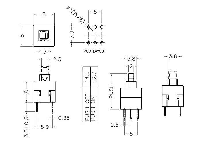 Nút nhấn 6 Chân 8x8MM ( Nhấn Nhả )