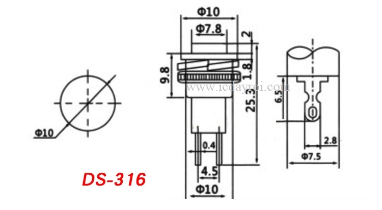 Nút nhấn nhả DS-316 10MM màu đỏ