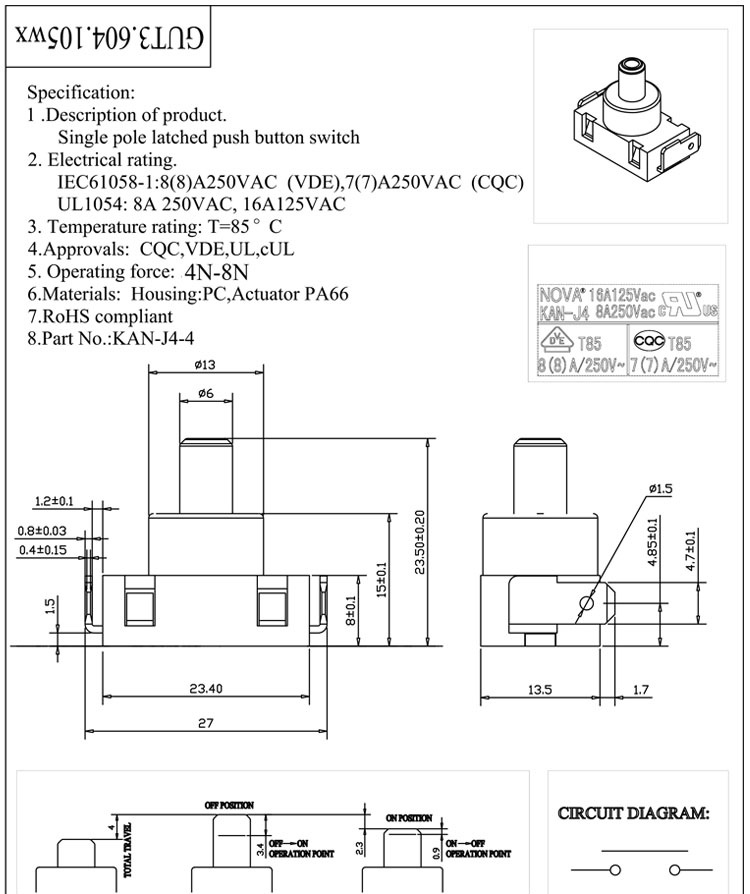 Nút nhấn NOVA KAN-J4 16A125V 8A250V