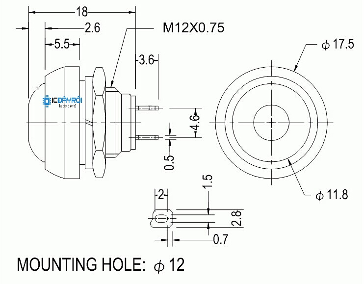 Nút nhấn PBS-33B màu đỏ 12MM chống nước