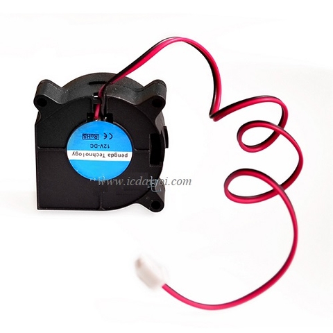 Quạt định hướng 12V: Khác với quạt thường thổi gió theo phương dọc trục, quạt định hướng gom gió lại và thổi theo phương bán kính của cánh quạt. Nhờ cấu tạo như vậy nên quạt định hướng có tốc độ gió cao, dễ dàng bố trí ống dẫn khí tới lỗ đùn nhựa trên máy in 3D.