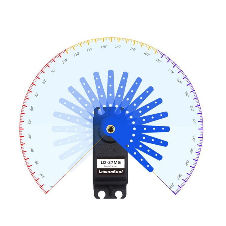Hiwonder LD-27MG is a full metal gear standard digital servo with 20kg large torque, using aluminum case for Robotic RC Car with control angle 270 degrees.