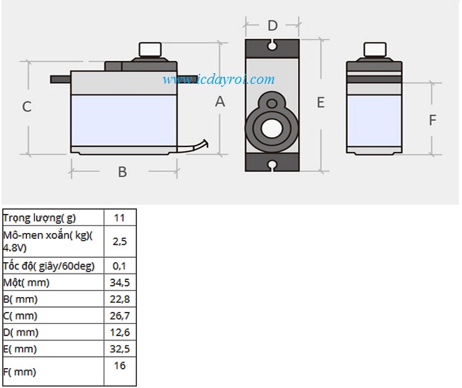 - Tôc độ: 0.1 sec/ 60 degrees (4.8VDC)
