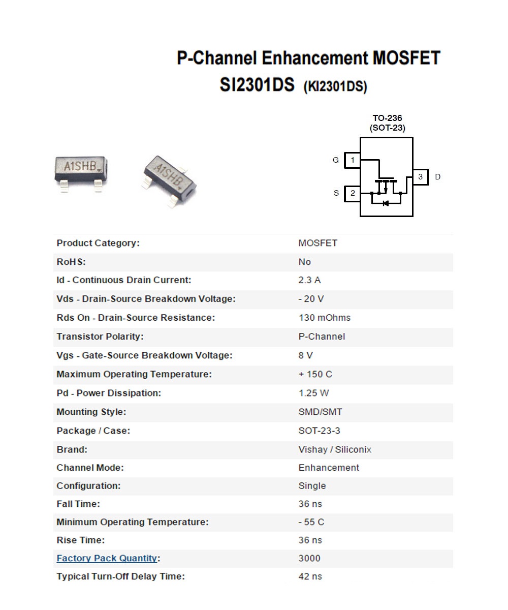 SI2301DS SOT-23 P-Channel Enhancement MOSFET