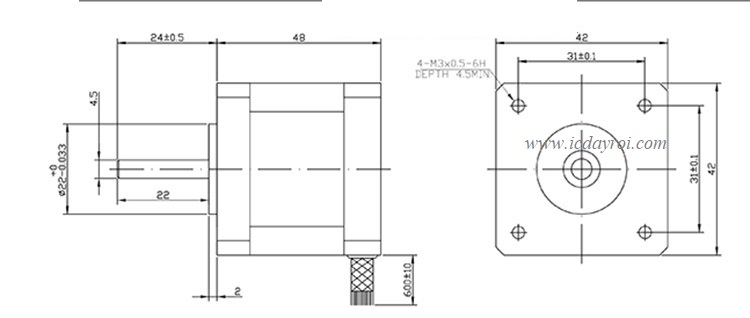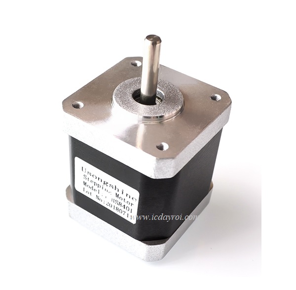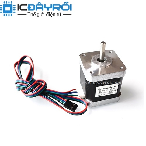 - Cường độ định mức 1.5A, mô men giữ 0.55 Nm, góc quay mỗi bước 1.8 °