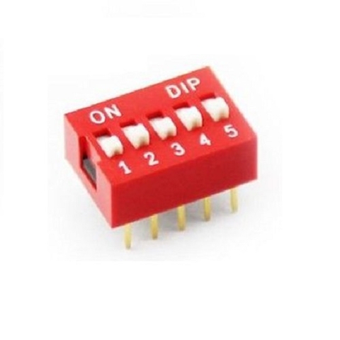5 Positions Dip Switch, Pitch 2.54MM, RED, 50VDC 100mA