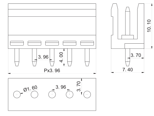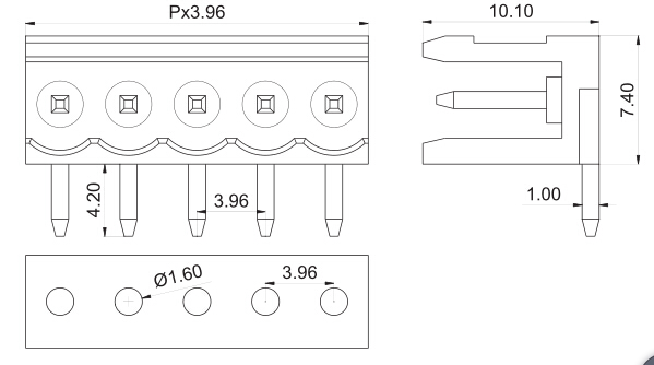 Terminal HT3.96, 4Pin, khoảng cách giữa 2 chân 3.96MM, chân thẳng.