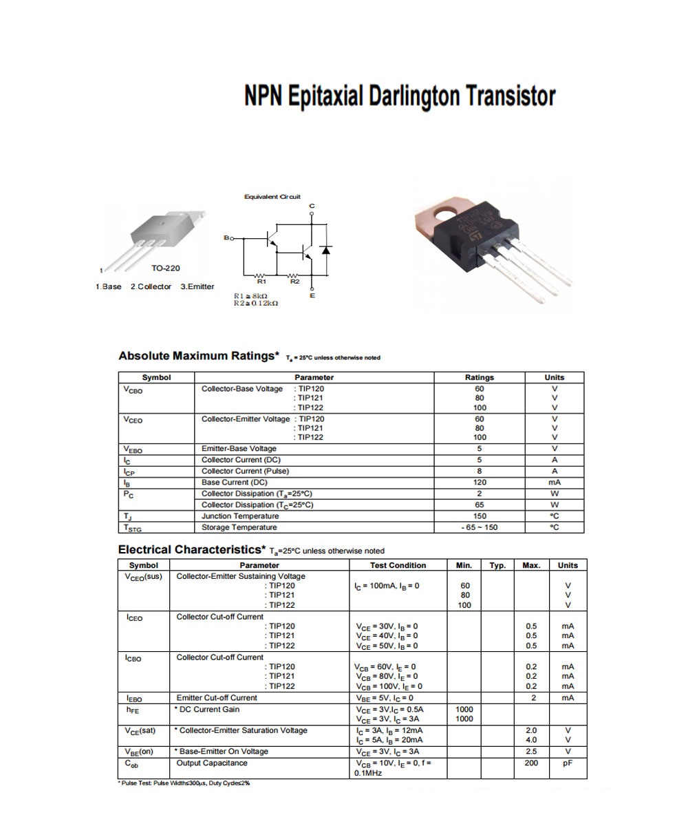 TIP122 TO220 TRANS DarLingTon NPN 5A 100V- hàng chính hãng