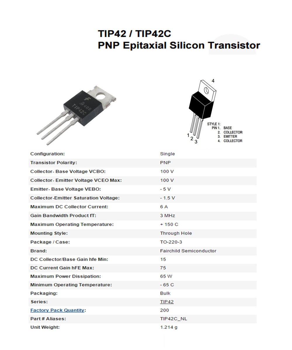 TIP42C TO220 TRANS PNP 6A 100V (DIP)