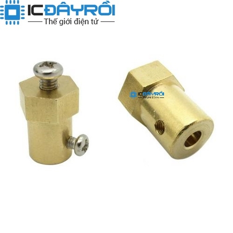 Khớp nối trục động cơ hình lục giác bằng đồng : ứng dụng nối động cơ với bánh xe, và các nối động cơ với cánh quạt và nhiều ứng dụng cho các bạn tự chế…