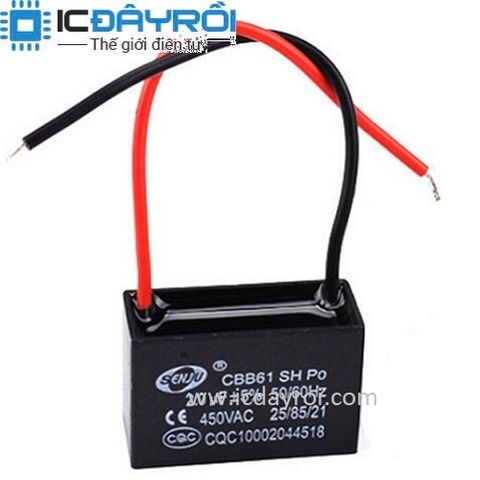 Tụ quạt dùng để thay thế cho quạt điện hay các động cơ xoay chiều cần dùng tụ khởi động. Tụ không phân cực, có lỗ để bắt vít.