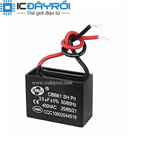 Tụ quạt dùng để thay thế cho quạt điện hay các động cơ xoay chiều cần dùng tụ khởi động. Tụ không phân cực, có lỗ để bắt vít.