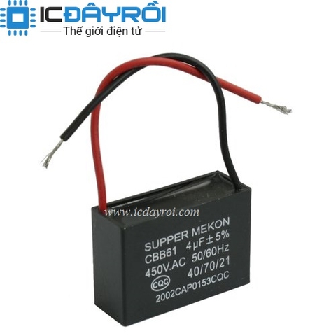 Tụ quạt dùng để thay thế cho quạt điện hay các động cơ xoay chiều cần dùng tụ khởi động. Tụ không phân cực, có lỗ để bắt vít.