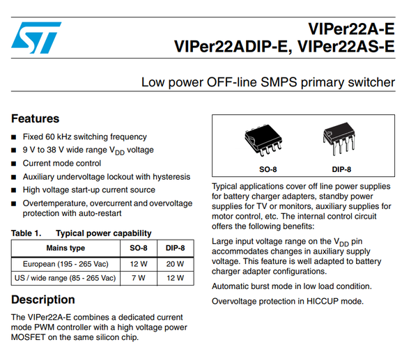 IC Nguồn VIPER12A và VIPER22A rất thông dụng và phổ biến trên thị trường. Đặc điểm của IC này là dễ thiết kế, ghép nối và giá thành vừa phải.