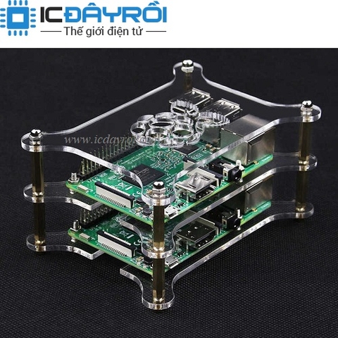 Vỏ mica xếp chồng Raspberry Pi 3, Pi 4 xây dựng một hệ thống cluster Raspberry Pi hoặc gắn các thiết bị phụ kiện theo từng lớp lên bo mạch. Với khả năng mở rộng không giới hạn, cho phép bạn xếp các bo mạch chồng lên nhau theo từng lớp, hoặc bạn có thể gắn các thiết bị phụ kiện như Raspberry Pi Portable Battery hay Raspbery Pi CPUInfo Screen lên trên cùng một case.